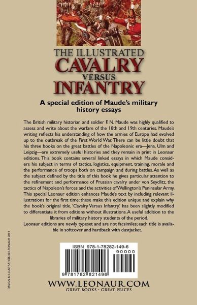 A special edition of Maude's military history essays The British military historian and soldier F. N. Maude was highly qualified to assess and write about the warfare of the 18th and 19th centuries. Maude's writing reflects his understanding of how the armies of Europe had evolved up to the outbreak of the First World War. There can be little doubt that his three books on the great battles of the Napoleonic era-Jena, Ulm and Leipzig-are extremely useful histories and they remain in print in Leonaur editions. This book contains several linked essays in which Maude considers his subject in terms of tactics, logistics, equipment, training, morale and the performance of troops both on campaign and during battles. As well as the subject defined by the title of this book he gives particular attention to the refinement and performance of Prussian cavalry under von Seydlitz, the tactics of Napoleon's forces and the activities of Wellington's Peninsular Army. This special Leonaur edition enhances Maude's text by including relevant illustrations for the first time; these make this edition unique and explain why the book's original title, 'Cavalry Versus Infantry,' has been slightly modified to differentiate it from editions without illustrations. A useful addition to the libraries of military history students of the period. Leonaur editions are newly typeset and are not facsimiles; each title is available in softcover and hardback with dustjacket.
