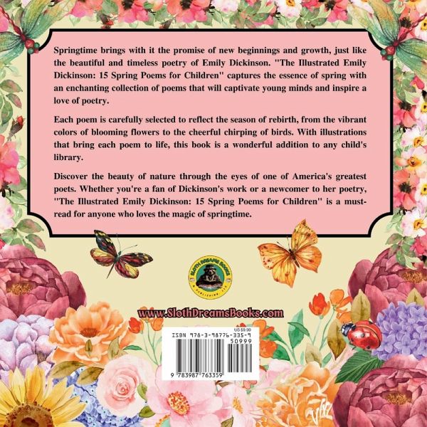 Springtime brings with it the promise of new beginnings and growth, just like the beautiful and timeless poetry of Emily Dickinson. "The Illustrated Emily Dickinson:15 Spring Poems for Children" captures the essence of spring with an enchanting collection of poems that will captivate young minds and inspire a love of poetry. Each poem is carefully selected to reflect the season of rebirth, from the vibrant colors of blooming flowers to the cheerful chirping of birds. With illustrations that bring each poem to life, this book is a wonderful addition to any child's library. Discover the beauty of nature through the eyes of one of America's greatest poets. Whether you're a fan of Dickinson's work or a newcomer to her poetry, "The Illustrated Emily Dickinson: 15 Spring Poems for Children" is a must-read for anyone who loves the magic of springtime.