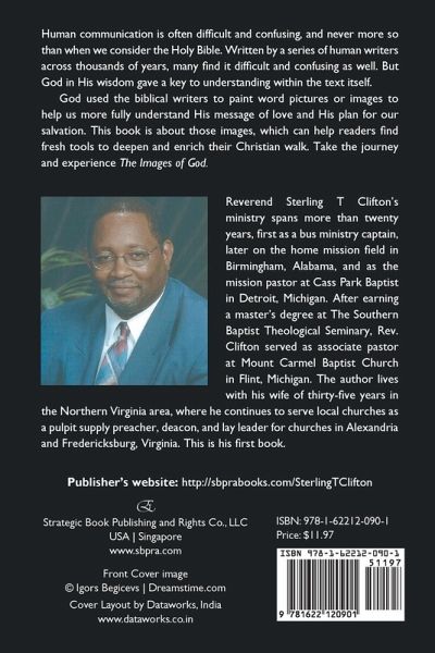 Human communication is often difficult and confusing, and never more so than when we consider the Holy Bible. Written by a series of human writers across thousands of years, many find it difficult and confusing as well. But God in His wisdom gave a key to understanding within the text itself. God used the biblical writers to paint word pictures or images to help us more fully understand His message of love and His plan for our salvation. This book is about those images, which can help readers find fresh tools to deepen and enrich their Christian walk. Take the journey and experience The Images of God. Reverend Sterling T Clifton's ministry spans more than twenty years, first as a bus ministry captain, later on the home mission field in Birmingham, Alabama, and as the mission pastor at Cass Park Baptist in Detroit, Michigan. After earning a master's degree at The Southern Baptist Theological Seminary, Rev. Clifton served as associate pastor at Mount Carmel Baptist Church in Flint, Michigan. The author lives with his wife of thirty-five years in the Northern Virginia area, where he continues to serve local churches as a pulpit supply preacher, deacon, and lay leader for churches in Alexandria and Fredericksburg, Virginia. This is his first book. Publisher's website: http://sbprabooks.com/SterlingTClifton