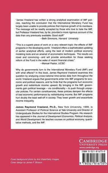 Why do governments turn to the International Monetary Fund (IMF) and with what effects? This book argues that governments enter IMF programs for economic and political reasons, and finds that the effects are negative on economic growth and income distribution. By bringing in the IMF, governments gain political leverage - via conditionality - to push through unpopular policies. Note that if governments desiring conditions are more likely to participate, estimating program effects is not straightforward: one must control for the potentially unobserved political determinants of selection. This book addresses the selection problem using a dynamic bivariate version of the Heckman model analyzing cross-national time-series data. The main finding is that the negative effects of IMF programs on economic growth are mitigated for certain constituencies since programs also have distributional consequences. But IMF programs doubly hurt the least well off in society: they lower growth and shift the income distribution upward.