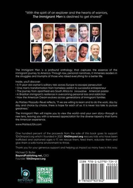 The Immigrant Men is a profound anthology that captures the essence of the immigrant journey to America. Through raw, personal narratives, it immerses readers in the struggles and triumphs of those who risked everything for a better life. Inside, you'll discover: ¿ A 9-year-old orphan's solitary trek across Europe to escape persecution ¿ One man's transformation from homeless addict to successful entrepreneur ¿ The journey from apartheid-era South Africa to Innovative American Pastor ¿ A Brazilian immigrant's resilience in overcoming personal loss and addiction ¿ How the American Dream evolves across generations of immigrant families As Matteo Mazzullo-Revel reflects, "If we are willing to learn and to do the work, day by day and choice by choice, there is hope for each of us. It is never too late to pursue greatness." The Immigrant Men will inspire you to view the world-and your own story-through a new lens, leaving you with a renewed appreciation for the diverse tapestry that forms the American experience. www.MatteoUSA.com