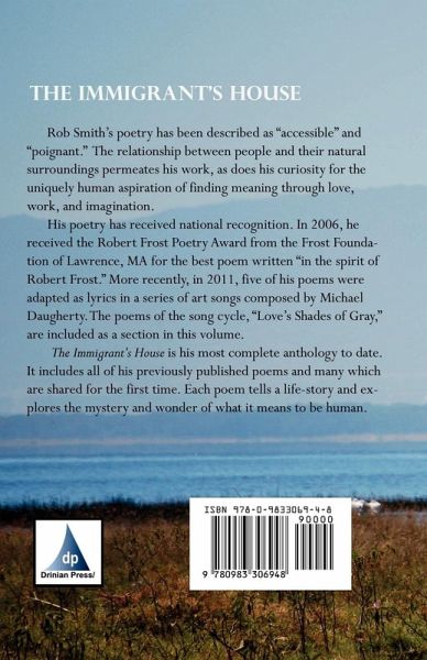 Rob Smith's poetry has been described as "accessible" and "poignant." The relationship between people and their natural surroundings permeates his work, as does his curiosity for the uniquely human aspiration of finding meaning through love, work, and imagination. His poetry has received national recognition. In 2006, he received the Robert Frost Poetry Award from the Frost Foundation of Lawrence, MA for the best poem written "in the spirit of Robert Frost." More recently, in 2011, five of his poems were adapted as lyrics in a series of art songs composed by R. Michael Daugherty. The poems of the song cycle, "Love's Shades of Gray," are included as a section in this volume. The Immigrant's House is his most complete anthology to date. It includes all of his previously published poems and many which are shared for the first time. Each poem tells a life story and explores the mystery and wonder of what it means to be human.