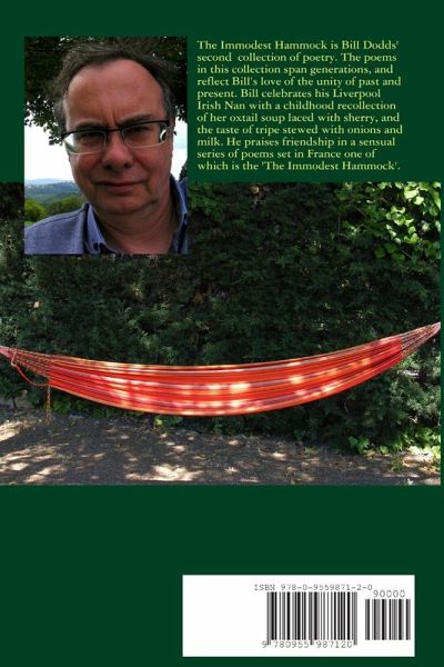 The Immodest Hammock is Bill Dodds' second collection of poetry. The poems in this collection span generations, and reflect Bill's love of the unity of past and present. Bill celebrates his Liverpool Irish Nan with a childhood recollection of her oxtail soup laced with sherry, and the taste of tripe stewed with onions and milk. He praises friendship in a sensual series of poems set in France one of which is the 'The Immodest Hammock'.