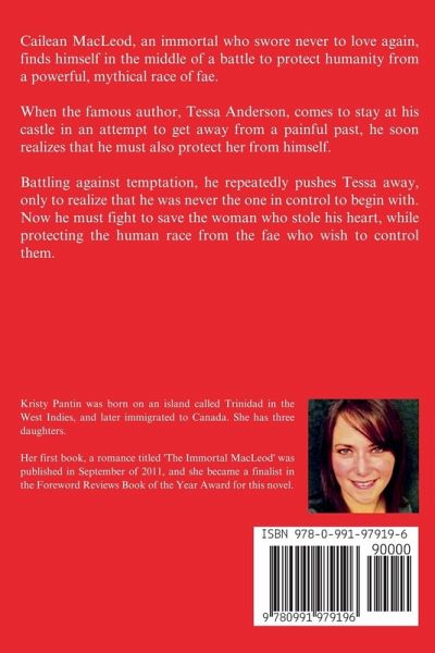 Cailean MacLeod, an immortal who swore never to love again, finds himself in the middle of a battle to protect humanity from a powerful, mythical race of fae. When the famous author, Tessa Anderson, comes to stay at his castle in an attempt to get away from a painful past, he soon realizes that he must also protect her from himself. Battling against temptation, he repeatedly pushes Tessa away, only to realize that he was never the one in control to begin with. Now he must fight to save the woman who stole his heart, while protecting the human race from the fae who wish to control them.