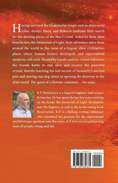 Having survived the Guatemalan jungle and an alien serial killer, Austin, Maya, and Rebecca continue their search for the missing pieces of the Star Crystal. Aided by their alien benefactors the Immortals of Light, their adventure takes them around the world to the ruins of a bygone alien civilization-places where human history developed and supernatural mysteries still exist. Hunted by Lucifer and his violent followers, the friends battle to stay alive and recover the powerful crystal, thereby learning the lost secrets of humanity's ancient past and moving one step closer to opening the doorway to the alien world. The quest of a lifetime continues ... for some.