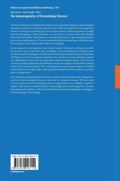 This book intends to investigate the broad spectrum of genetic changes in immunological processes involved in cutaneous diseases. One of the main goals of immunogenetic studies is finding susceptibility genes for complex diseases. This can provide an insight into the pathogenesis of the condition in a way that is not easily achievable through other kinds of studies. Thus they are a rational initial step for generating hypotheses about disease pathogenesis. This may especially benefit dermatology, a field notorious for having too many diseases with unknown etiologies. Immunogenetic investigations have made targeted treatment strategies possible for diseases such as psoriasis and pemphigus. Even though these strategies have revolutionized the management of chronic dermatological conditions such as psoriasis, still there are a lot of unanswered questions. For instance, psoriasis patients respond very differently to each of the commercially available biological agents. This diversity could be partially explained by the differences in the sets of genes responsible for disease induction in each individual. Thus whole genome sequencing strategies, if feasible at individual levels, might help in tailoring these targeted treatments based on specific genetic backgrounds. Our intention in preparing this book was to explore the broad spectrum of the genetic aspects of immunological processes involved in cutaneous diseases. We have tried to cover most areas of dermatology where enough studies were available to gather a chapter. Still, there is a substantial lack of knowledge on the immunogenetics of many dermatological conditions. We hope that this book would encourage the investigators to fill these gaps of knowledge.
