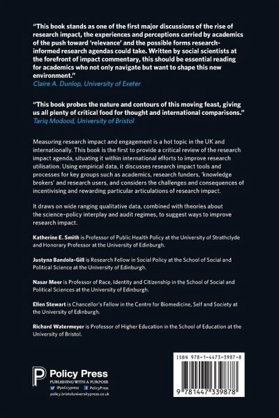 Measuring research impact and engagement is a much debated topic in the UK and internationally. This book is the first to provide a critical review of the research impact agenda, situating it within international efforts to improve research utilisation.