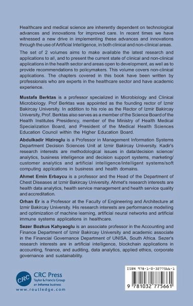 Mustafa Berktas is a professor specialized in Microbiology and Clinical Microbiology. Prof Berktas was appointed as the founding rector of Izmir Bakircay University. In addition to his role as the Rector of Izmir Bakircay University, Prof. Berktas also serves as a member of the Science Board of the Health Institutes Presidency, member of the Ministry of Health Medical Specialization Board, and President of the Medical Health Sciences Education Council within the Higher Education Board. Abdulkadir Hiziroglu is a Professor in Management Information Systems Department Decision Sciences Unit at Izmir Bakircay University. Kadir's research interests are methodological issues in data/decision science/analytics, business intelligence and decision support systems, marketing/ customer analytics and artificial intelligence/intelligent systems/soft computing applications in business and health domains. Ahmet Emin Erbaycu is a professor and the Head of the Department of Chest Diseases at Izmir Bakircay University. Ahmet's research interests are health data analytics, health service management and health service quality and accreditation. Orhan Er is a Professor at the Faculty of Engineering and Architecture at Izmir Bakircay University. His research interests are performance modelling and optimization of machine learning, artificial neural networks and artificial immune systems applications in healthcare. Sezer Bozkus Kahyaoglu is an associate professor in the Accounting and Finance Department of Izmir Bakircay University and academic associate in the Financial Governance Department of UNISA, South Africa. Sezer's research interests are in artificial intelligence, blockchain applications in accounting, finance, and auditing, data analytics, applied ethics, corporate governance and sustainability.