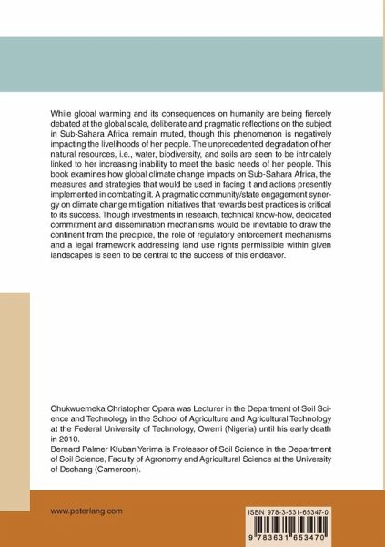 While global warming and its consequences on humanity are being fiercely debated at the global scale, deliberate and pragmatic reflections on the subject in Sub-Sahara Africa remain muted, though this phenomenon is negatively impacting the livelihoods of her people. The unprecedented degradation of her natural resources, i.e., water, biodiversity, and soils are seen to be intricately linked to her increasing inability to meet the basic needs of her people. This book examines how global climate change impacts on Sub-Sahara Africa, the measures and strategies that would be used in facing it and actions presently implemented in combating it. A pragmatic community/state engagement synergy on climate change mitigation initiatives that rewards best practices is critical to its success. Though investments in research, technical know-how, dedicated commitment and dissemination mechanisms would be inevitable to draw the continent from the precipice, the role of regulatory enforcement mechanisms and a legal framework addressing land use rights permissible within given landscapes is seen to be central to the success of this endeavor.