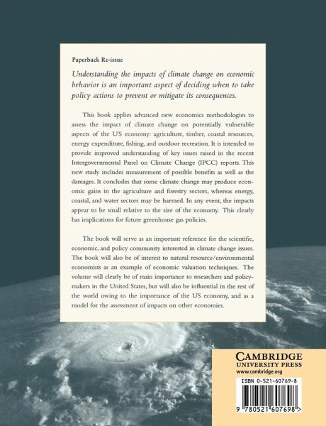 Understanding the impacts of climate change on economic behaviour is an important aspect of deciding when to take policy actions to prevent or mitigate its consequences. This book applies advanced new economics methodologies to assess impacts on potentially vulnerable aspects of the US economy: agriculture, timber, coastal resources, energy expenditure, fishing, outdoor recreation. It is intended to provide improved understanding of key issues raised in the recent Intergovernmental Panel on Climate Change (IPCC) reports. It concludes that some climate change may produce economic gains in the agriculture and forestry sectors, whereas energy, coastal structures, and water sectors may be harmed. The book will serve as an important reference for the scientific, economic, and policy community, and will also be of interest to natural resource/environmental economists as an example of economic valuation techniques. The volume will clearly be of main importance to researchers and policymakers in the US, but will also be influential as a model for assessment of impacts on economies worldwide.