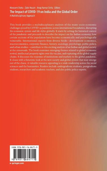 This book provides a multidisciplinary analysis of the many socio-economic challenges posed by COVID-19 pandemic across international boundaries, disrupting the economic system and life styles globally. It starts by setting the historical context of the pandemic and proceeds to describe the impact on the Indian economy, how certain sections of the population have become economically and psychologically vulnerable. International experts from diverse fields-development economics, macroeconomics, corporate finance, history, sociology, psychology, public policy, and urban studies-contribute to this exciting analysis of an Indian and global society at the crossroads. The book examines emerging themes related to global economic revival, intellectual property rights over the vaccine, and rupturing of the global supply chains. It discusses the response of institutions and markets to the global pandemic. It closes with a futuristic look at the new society and global system that may emerge out of the chaos. A valuable resource appealing to a wide readership across the social sciences and the humanities. Readers include undergraduate students, postgraduate students, researchers and academic teachers, and also public policy experts.