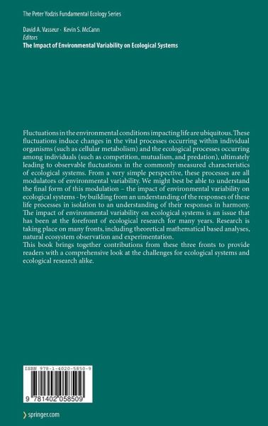 Fluctuations in the environmental conditions impacting life are ubiquitous. These fluctuations induce changes in the vital processes occurring within individual organisms (such as cellular metabolism) and the ecological processes occurring among individuals (such as competition, mutualism, and predation), ultimately leading to observable fluctuations in the commonly measured characteristics of ecological systems. From a very simple perspective, these processes are all modulators of environmental variability. We might best be able to understand the final form of this modulation - the impact of environmental variability on ecological systems - by building from an understanding of the responses of these life processes in isolation to an understanding of their responses in harmony. The impact of environmental variability on ecological systems is an issue that has been at the forefront of ecological research for many years. Research is taking place on many fronts, including theoretical mathematical based analyses, natural ecosystem observation and experimentation.