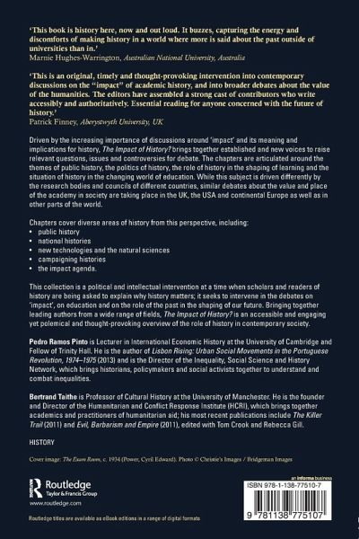 Driven by the increasing importance of discussions around 'impact' and its meaning and implications for history, The Impact of History? brings together established and new voices to raise relevant questions, issues and controversies for debate. The chapters are articulated around the themes of public history, the politics of history, the role of history in the shaping of learning and the situation of history in the changing world of education. While this subject is driven differently by the research bodies and councils of different countries, similar debates about the value and place of the academy in society are taking place in the UK, the USA and Europe as well as in other parts of the world. Chapters cover diverse areas of history from this perspective including: public history national histories new technologies and the natural sciences campaigning histories the impact agenda. This collection is a political and intellectual intervention at a time when scholars and readers of history are being asked to explain why history matters and it seeks to intervene in the debates on 'impact', on education and on the role of the past in the shaping of our future. Bringing together leading authors from a wide range of fields, The Impact of History? is an accessible and engaging yet polemical and thought-provoking overview of the role of history in contemporary society.