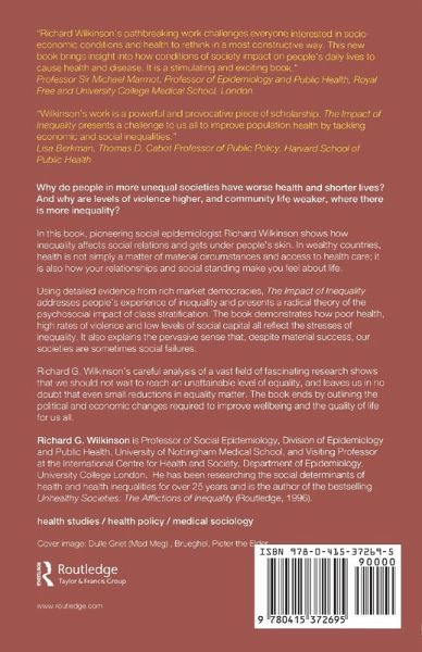In this book, pioneering social epidemiologist Richard Wilkinson, shows how inequality affects social relations and well-being. In wealthy countries, health is not simply a matter of material circumstances and access to health care; it is also how your relationships and social standing make you feel about life. Using detailed evidence from rich market democracies, the book addresses people's experience of inequality and presents a radical theory of the psychosocial impact of class stratification. The book demonstrates how poor health, high rates of violence and low levels of social capital all reflect the stresses of inequality and explains the pervasive sense that, despite material success, our societies are sometimes social failures. What emerges is a new conception of what it means to say that we are social beings and of how the social structure penetrates our personal lives and relationships.
