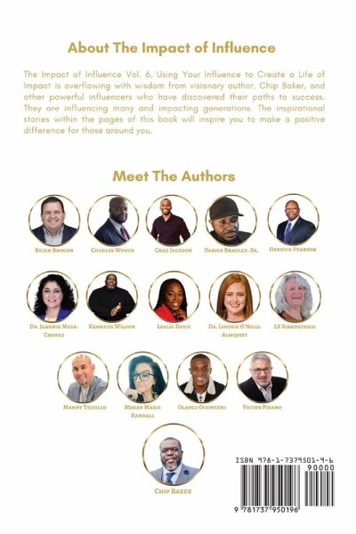 The Impact of Influence Vol. 6, Using Your Influence to Create a Life of Impact is overflowing with wisdom from visionary author, Chip Baker, and other powerful influencers who have discovered their paths to success. They are influencing many and impacting generations. The inspirational stories within the pages of this book will inspire you to make a positive difference for those around you.