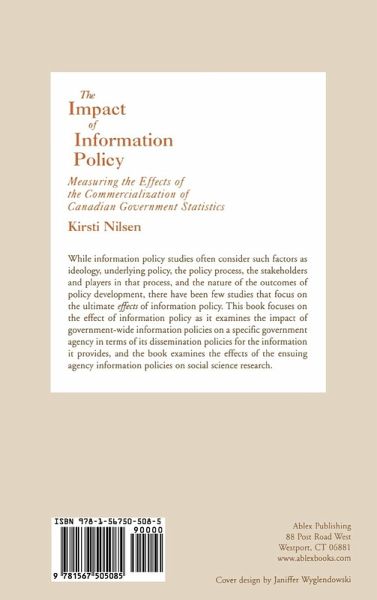 This book focuses on the effects of information policy. While information policy studies often consider the ideology underlying policy, the policy process, the stakeholders and players in that process, and the nature of the outcomes of policy development, there have been few studies that focus on the ultimate effects of information policy. This book looks at effects from two perspectives. First, it examines the impact of government-wide information policies on a specific government agency in terms of its dissemination policies for the information it provides. Secondly, the effects of the ensuing agency information policies on social science research are examined. The government-wide policies of interest here are cost-recovery and restraint initiatives imposed by the Canadian federal government in the mid-1980s. The policy statements specifically identified government information as an area in which increased revenues could be generated. Such de facto information policies can have a wide effect on government information production and dissemination. In this book, the history and background of the policies is considered and the effects were empirically examined using multiple methods of analysis. The period covered is mid-1980s through mid-1990s. An epilogue chapter provides information on recent policy developments in Canada and the continuing effects of the policies of the 1980s.