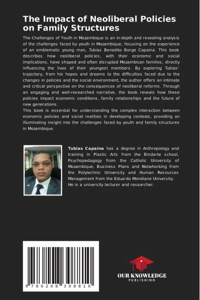 The Challenges of Youth in Mozambique is an in-depth and revealing analysis of the challenges faced by youth in Mozambique, focusing on the experience of an emblematic young man, Tubias Benedito Borge Capaina. This book describes how neoliberal policies, with their economic and social implications, have shaped and often disrupted Mozambican families, directly influencing the lives of their youngest members. By exploring Tubias' trajectory, from his hopes and dreams to the difficulties faced due to the changes in policies and the social environment, the author offers an intimate and critical perspective on the consequences of neoliberal reforms. Through an engaging and well-researched narrative, the book reveals how these policies impact economic conditions, family relationships and the future of new generations.This book is essential for understanding the complex interaction between economic policies and social realities in developing contexts, providing an illuminating insight into the challenges faced by youth and family structures in Mozambique.