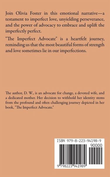 Olivia Foster always believed in striving for perfection, but life had a different plan. "The Imperfect Advocate," follows Olivia's unexpected journey as she discovers the profound intricacies of dyslexia and giftedness through her daughter, Natalie, and her son, Jonathan. Natalie, a bright and gifted child, grapples with the complexities of dyslexia, while her younger brother Jonathan tags along to school meetings. As Olivia and her supportive husband, Alex, endeavor to unravel the intricacies of these conditions, she realizes that perfection is not the goal; understanding and advocacy are. Amidst the overwhelming confusion and initial reluctance, Olivia emerges as an advocate, flawed yet fiercely determined, navigating the maze of specialists, educators, and societal misconceptions. Her imperfections become her strength, fueling an unyielding pursuit to secure the best educational support for Natalie and Jonathan. "The Imperfect Advocate" chronicles Olivia's transformation-a tale of vulnerability turned resilience, doubt turned determination. Through her journey, she embodies the struggles of every parent facing similar hurdles, where love and imperfections pave the way for unwavering advocacy. As Olivia's understanding of dyslexia and giftedness deepens, she becomes a beacon of hope, transcending personal imperfections to champion her children's rights. Her unwavering determination to carve a path for Natalie and Jonathan inspires a ripple effect, redefining perceptions about learning differences. Join Olivia Foster in this emotional narrative-a testament to imperfect love, unyielding perseverance, and the power of advocacy to embrace and uplift the imperfectly perfect. "The Imperfect Advocate" is a heartfelt journey, reminding us that the most beautiful forms of strength and love sometimes lie in our imperfections.