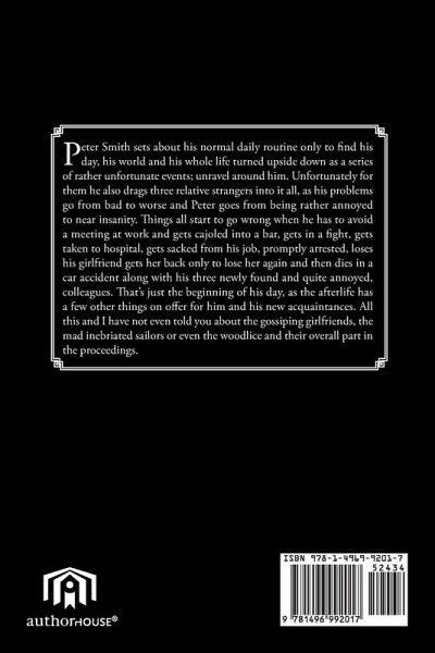 Peter Smith sets about his normal daily routine only to find his day, his world and his whole life turned upside down as a series of rather unfortunate events; unravel around him. Unfortunately for them he also drags three relative strangers into it all, as his problems go from bad to worse and Peter goes from being rather annoyed to near insanity. Things all start to go wrong when he has to avoid a meeting at work and gets cajoled into a bar, gets in a fight, gets taken to hospital, gets sacked from his job, promptly arrested, loses his girlfriend gets her back only to lose her again and then dies in a car accident along with his three newly found and quite annoyed, colleagues. That's just the beginning of his day, as the afterlife has a few other things on offer for him and his new acquaintances. All this and I have not even told you about the gossiping girlfriends, the mad inebriated sailors or even the woodlice and their overall part in the proceedings.