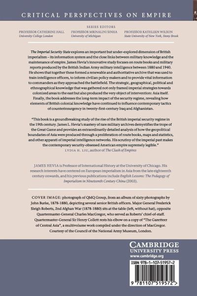 The Imperial Security State explores an important but under-explored dimension of British imperialism - its information system and the close links between military knowledge and the maintenance of empire. James Hevia's innovative study focuses on route books and military reports produced by the British Indian Army military intelligence between 1880 and 1940. He shows that together these formed a renewable and authoritative archive that was used to train intelligence officers, to inform civilian policy makers and to provide vital information to commanders as they approached the battlefield. The strategic, geographical, political and ethnographical knowledge that was gathered not only framed imperial strategies towards colonized areas to the east but also produced the very object of intervention: Asia itself. Finally, the book addresses the long-term impact of the security regime, revealing how elements of British colonial knowledge have continued to influence contemporary tactics of counterinsurgency in twenty-first-century Iraq and Afghanistan.
