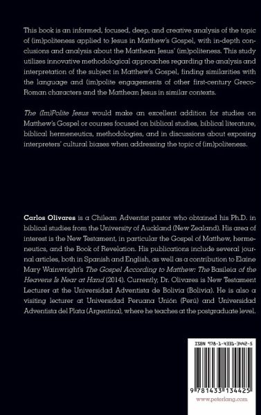 This book is an informed, focused, deep, and creative analysis of the topic of (im)politeness applied to Jesus in Matthew's Gospel, with in-depth conclusions and analysis about the Matthean Jesus' (im)politeness. This study utilizes innovative methodological approaches regarding the analysis and interpretation of the subject in Matthew's Gospel, finding similarities with the language and (im)polite engagements of other first-century Greco-Roman characters and the Matthean Jesus in similar contexts.