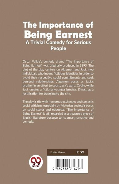 Oscar Wilde's comedy drama "The Importance of Being Earnest" was originally produced in 1895. The plot of the play centers on Algernon and Jack, two individuals who invent fictitious identities in order to avoid their respective social commitments and seek personal relationships. Algernon poses as Jack's brother in an effort to court Jack's ward, Cecily, while Jack creates a fictional younger brother, Ernest, as a justification for traveling to the city. The play is rife with humorous exchanges and sarcastic social criticism, especially on Victorian society's focus on social status and etiquette. "The Importance of Being Earnest" is still regarded as a treasured piece of English literature because to its smart narrative and comedy.