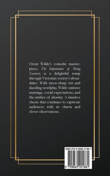 Oscar Wilde's comedic masterpiece, The Importance of Being Earnest, is a delightful romp through Victorian society's absurdities. With razor-sharp wit and dazzling wordplay, Wilde satirizes marriage, social expectations, and the artifice of identity. A timeless classic that continues to captivate audiences with its charm and clever observations.