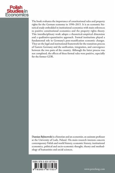 The book evaluates the importance of constitutional rules and property rights for the German economy in 1990-2015. It is an economic historical study embedded in institutional economics with main references to positive constitutional economics and the property rights theory. This interdisciplinary work adopts a theoretical-empirical dimension and a qualitative-quantitative approach. Formal institutions played a fundamental role in Germany's post-reunification economic changes. They set the legal and institutional framework for the transition process of Eastern Germany and the unification, integration and convergence between the two parts of the country. Although the latter process was not completed, the effects of these formal rules were positive, especially for the former GDR.