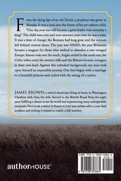 From the dying lips of an old Druid, a prophecy was given to Masada. It was a look into the future of his yet unborn child. "One day your son will become a great leader even someday a king". The child was a son and now nineteen years later he was a man. It was a time of change; the Romans had long gone and the vacuum left behind created chaos. The year was 450AD, the year Britannia became a magnet for those who wished to abandon a war-ravaged Europe. Saxons took over the south, Angles settled in the north east, the Celtic tribes ruled the western hills and the Britons became strangers in their own land. Against this turbulent background, one man took upon himself an impossible journey. One that began with a marriage to a beautiful princess and ended with the saving of a nation.
