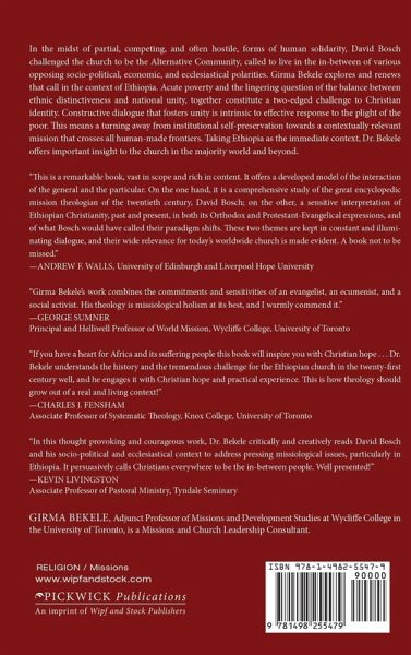 In the midst of partial, competing, and often hostile forms of human solidarity, David Bosch challenged the church to be the Alternative Community called to live in the in-between of various opposing socio-political, economic, and ecclesiastical polarities. Girma Bekele explores and renews that call in the context of Ethiopia. Acute poverty and the lingering question of the balance between ethnic distinctiveness and national unity, together constitute a two-edged challenge to Christian identity. Constructive dialogue that fosters unity is intrinsic to effective response to the plight of the poor. This means a turning away from institutional self-preservation towards a contextually relevant mission that crosses all human-made frontiers. Taking Ethiopia as the immediate context, Dr. Bekele offers important insight to the church in the majority world and beyond.
