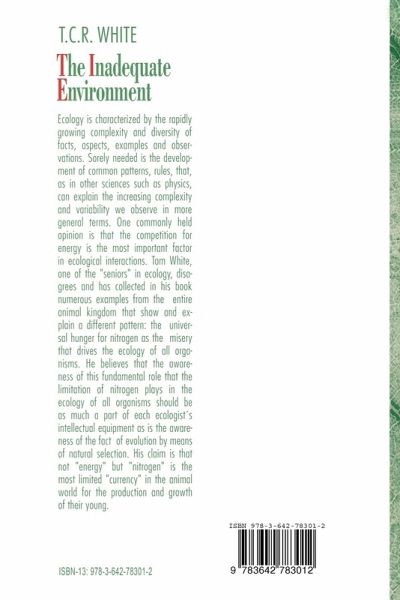 Ecology is characterized by a rapidly growing complexity and diversity of facts, aspects, examples, and observations. What is badly needed is the development of common patterns, of rules that, as in other sciences such as physics, can more generally explain the increasing complexity and variability we observe. Tom White, being one of the "seniors" in ecology, makes such an attempt in his book. the pattern he shows and explains with numerous examples from the entire animal kingdom is a universal hunger for nitrogen, a misery that drives the ecology of all organisms. He advocates that the awareness of this fundamental role that the limitation of nitrogen plays in the ecology of all organisms should be as a much part of each ecologis's intellectual equipment as is the awareness of the fact of evolution by means of natural selection. His claim is that not "enery" but "nitrogen" is the most limited "currency" in the animal world for the production and growth of their young.