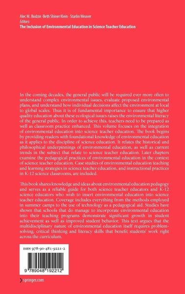"This is an important book. ... it comprises a collection of 22 chapters addressing the historical and philosophical foundations of environmental education and current trends in environmental education pedagogy. ... This book is a very informative resource that will be of use to teacher educators from all disciplines. All chapters seek to include theoretical as well as empirical and practical aspectsthus providing sufficient contextualisation in the field as well as suggestions for furthering research into practice." (Laura Colucci-Gray, Educational Review, December, 2011)