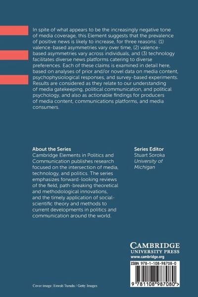 This Element suggests that the prevalence of positive news is likely to increase, for three reasons: (1) valence-based asymmetries vary over time, (2) valence-based asymmetries vary across individuals, and (3) technology facilitates diverse news platforms catering to diverse preferences.