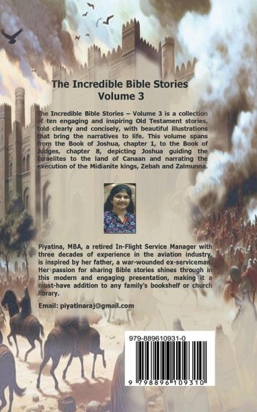 The Incredible Bible Stories - Volume 3 is a collection of ten engaging and inspiring Old Testament stories, told clearly and concisely, with beautiful illustrations that bring the narratives to life. This volume spans from the Book of Joshua, chapter 1, to the Book of Judges, chapter 8, depicting Joshua guiding the Israelites to the land of Canaan and narrating the execution of the Midianite kings, Zebah and Zalmunna.