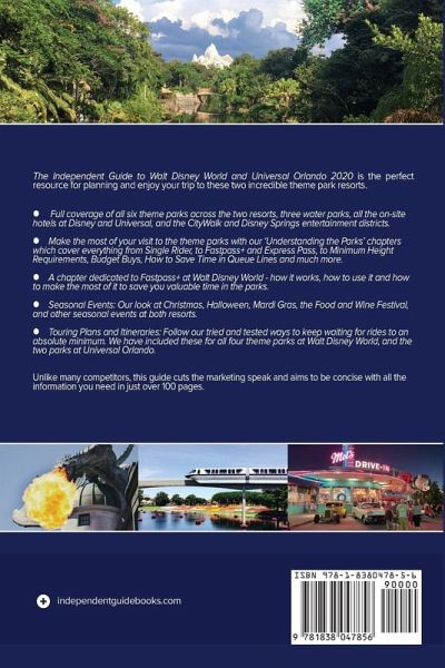 A NEWER VERSION OF THIS GUIDE IS NOW AVAILABLE - "THE INDEPENDENT GUIDE TO WALT DISNEY WORLD AND UNIVERSAL ORLANDO 2021" Planning a trip to Walt Disney World and Universal Orlando? Our concise guide cover everything you need to know in only 112 pages. Too often guidebooks now go on for 200-300 pages for each park - we tell you what you REALLY need to know in our best-selling series. We cover every ride, show, shop, character meet, hotel, tell you how to save time and money and make sure you have the adventure of a lifetime. The guide includes:How to plan your trip Transportation: How to get to both Walt Disney World and Universal Orlando The Hotels: Choosing a place to stay - We cover all the 35+ hotels at Disney and Universal The Parks: A look at every ride, show, restaurant and more at all 6 Disney and Universal theme parks. [Includes coverage of Star Wars: Galaxy's Edge] Tickets: Choosing the best option for you. FastPass+: Learn how to use this FREE valuable time-saving service at Walt Disney World. We cover all the ins and outs to make sure you get to ride everything you want. Express Pass: How to save hours of time at Universal Orlando (and how to save $100s on Express Passes. Disney and Universal on a Budget: How to save money on your trip, when booking and while visiting. Skip the Lines with our Touring Plans and Suggested Itineraries: Follow our tried and tested ways to keep waiting to an absolute minimum at all the Disney and Universal theme parks. Park Services: When to visit, attraction and character photos, ride heights, Single Rider, Rider Swap and much more. Seasonal Events: Our look at Christmas, Halloween, Food and Wine Festival, Mardi Gras, Marathons, and other seasonal events.