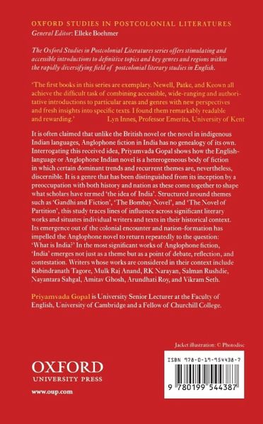 The Oxford Studies in Postcolonial Literatures series offers stimulating and accessible introductions to definitive topics and key genres and regions within the rapidly diversifying field of postcolonial literary studies in English. It is often claimed that unlike the British novel or the novel in indigenous Indian languages, Anglophone fiction in India has no genealogy of its own. Interrogating this received idea, Priyamvada Gopal shows how the English-language or Anglophone Indian novel is a heterogeneous body of fiction in which certain dominant trends and recurrent themes are, nevertheless, discernible. It is a genre that has been distinguished from its inception by a preoccupation with both history and nation as these come together to shape what scholars have termed 'the idea of India'. Structured around themes such as 'Gandhi and Fiction', 'The Bombay Novel', and 'The Novel of Partition', this study traces lines of influence across significant literary works and situates individual writers and texts in their historical context. Its emergence out of the colonial encounter and nation-formation has impelled the Anglophone novel to return repeatedly to the question: 'What is India?' In the most significant works of Anglophone fiction, 'India' emerges not just as a theme but as a point of debate, reflection, and contestation. Writers whose works are considered in their context include Rabindranath Tagore, Mulk Raj Anand, RK Narayan, Salman Rushdie, Nayantara Sahgal, Amitav Ghosh, Arundhati Roy, and Vikram Seth.