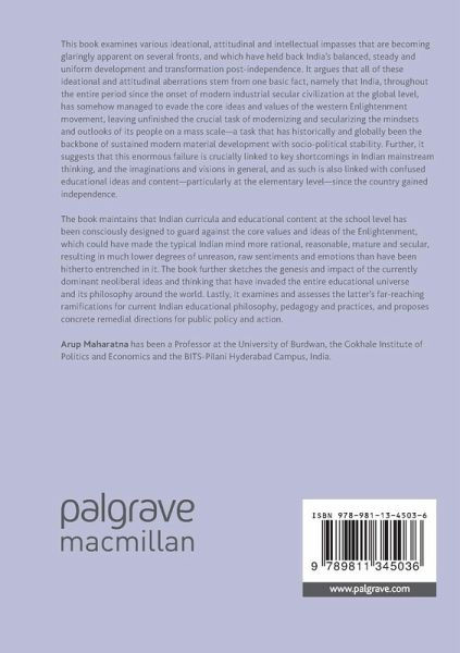 The book maintains that Indian curricula and educational content at the school level has been consciously designed to guard against the core values and ideas of the Enlightenment, which could have made the typical Indian mind more rational, reasonable, mature and secular, resulting in much lower degrees of unreason, raw sentiments and emotions than have been hitherto entrenched in it. The book further sketches the genesis and impact of the currently dominant neoliberal ideas and thinking that have invaded the entire educational universe and its philosophy around the world. Lastly, it examines and assesses the latter's far-reaching ramifications for current Indian educational philosophy, pedagogy and practices, and proposes concrete remedial directions for public policy and action.