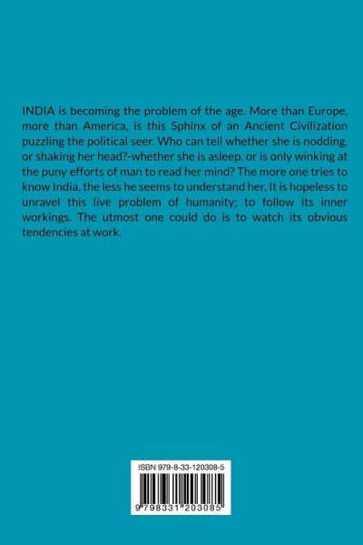INDIA is becoming the problem of the age. More than Europe, more than America, is this Sphinx of an Ancient Civilization puzzling the political seer. Who can tell whether she is nodding, or shaking her head?-whether she is asleep, or is only winking at the puny efforts of man to read her mind? The more one tries to know India, the less he seems to understand her. It is hopeless to unravel this live problem of humanity; to follow its inner workings. The utmost one could do is to watch its obvious tendencies at work.