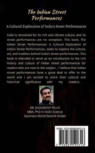 India is renowned for its rich and vibrant culture, and its street performances are no exception. This book, The Indian Street Performances: A Cultural Exploration of India's Street Performances, seeks to explore the culture, art, and tradition behind India's street performances. This book is intended to serve as an introduction to the rich history and culture of Indian street performances for readers who are new to the subject. . I believe that Indian street performances have a great deal to offer to the world and I am excited to share their cultural and historical significance with my readers.