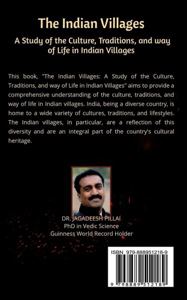 This book, ""The Indian Villages: A Study of the Culture, Traditions, and way of Life in Indian Villages"" aims to provide a comprehensive understanding of the culture, traditions, and way of life in Indian villages. India, being a diverse country, is home to a wide variety of cultures, traditions, and lifestyles. The Indian villages, in particular, are a reflection of this diversity and are an integral part of the country's cultural heritage. The book is divided into 11 chapters, each of which explores a different aspect of village life in India. The first chapter, ""Introduction: An overview of the importance of Indian villages in the country's cultural heritage and an examination of the challenges facing rural communities in modern India"" provides a general overview of the significance of Indian villages in the country's cultural heritage and an examination of the challenges facing rural communities in modern India.