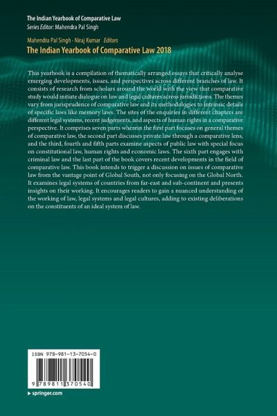 This yearbook is a compilation of thematically arranged essays that critically analyseemerging developments, issues, and perspectives across different branches of law. Itconsists of research from scholars around the world with the view that comparativestudy would initiate dialogue on law and legal cultures across jurisdictions. The themesvary from jurisprudence of comparative law and its methodologies to intrinsic detailsof specific laws like memory laws. The sites of the enquiries in different chapters aredifferent legal systems, recent judgements, and aspects of human rights in a comparativeperspective. It comprises seven parts wherein the first part focuses on general themesof comparative law, the second part discusses private law through a comparative lens,and the third, fourth and fifth parts examine aspects of public law with special focuson constitutional law, human rights and economic laws. The sixth part engages withcriminal law and the last part of the book covers recent developments in the field ofcomparative law. This book intends to trigger a discussion on issues of comparativelaw from the vantage point of Global South, not only focusing on the Global North.It examines legal systems of countries from far-east and sub-continent and presentsinsights on their working. It encourages readers to gain a nuanced understanding ofthe working of law, legal systems and legal cultures, adding to existing deliberationson the constituents of an ideal system of law.