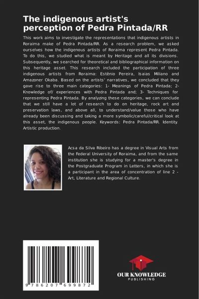 This work aims to investigate the representations that indigenous artists in Roraima make of Pedra Pintada/RR. As a research problem, we asked ourselves how the indigenous artists of Roraima represent Pedra Pintada. To do this, we studied what is meant by Heritage and all its divisions. Subsequently, we searched for theoretical and bibliographical information on this heritage asset. This research included the participation of three indigenous artists from Roraima: Estênio Pereira, Isaias Miliano and Amazoner Okaba. Based on the artists' narratives, we concluded that they gave rise to three main categories: 1- Meanings of Pedra Pintada; 2- Knowledge of/ experiences with Pedra Pintada and; 3- Techniques for representing Pedra Pintada. By analyzing these categories, we can conclude that we still have a lot of research to do on heritage, rock art and preservation laws, and above all, to understand/value those who have already been discussing and taking a more symbolic/careful/critical look at this asset, the indigenous people. Keywords: Pedra Pintada/RR. Identity. Artistic production.
