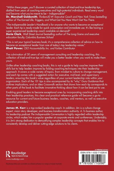 Unlike other leadership coaching books, this is not a guide to help coaches improve their skills but to help leaders improve by folding coaching techniques into their leadership approach. It covers a wide variety of topics, from mindset to culture to change management, and each tip comes with a suggested action for executive, mid-level, and supervisory leaders, ensuring this book's value regardless of your current leadership role within your organization. Each of the 101 tips is also accompanied by its "why," Guru Guidance that outlines implications, and an Idea Crosswalk section that shows how each tip corresponds to other parts of the book to facilitate innovative thinking about how it can be best put to use.