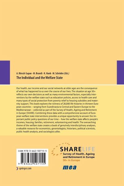 Our health, our income and our social networks at older ages are the consequence of what has happened to us over the course of our lives. The situation at age 50+ reflects our own decisions as well as many environmental factors, especially interventions by the welfare state. This book explores the richness of 28,000 life histories in thirteen European countries, collected as part of the Survey of Health, Ageing and Retirement in Europe (SHARE). Combining these data with a comprehensive account of European welfare state interventions provides a unique opportunity to answer the important public policy questions of our time - how the welfare state affects people's incomes, housing, families, retirement, volunteering and health. The overarching theme of the welfare state creates a book of genuinely interdisciplinary analyses, a valuable resource for economists, gerontologists, historians, political scientists, public health analysts, and sociologists alike.