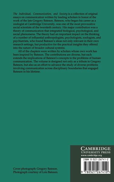 The Individual, Communication, and Society is a collection of original essays on communication written by leading scholars in honor of the work of the late Gregory Bateson. Bateson, who began his career as a zoologist at Cambridge University, was one of the most provocative social scientists of the twentieth century. His major contribution was a theory of communication that integrated biological, psychological, and social phenomena. The theory had an important impact on the thinking of a number of influential anthropologists, psychologists, zoologists, and psychiatrists, who found Bateson's ideas not only relevant in their own research settings, but productive for the practical insights they offered into the nature of broader cultural systems. All of the chapters were written by scholars whose own work has been inspired by Bateson. The contributions are diverse, but each extends the implications of Bateson's concepts to the problems of human communication. The volume is designed not only as a tribute to Gregory Bateson, but also as an effort to advance the study of diverse problems involving communication across disciplinary boundaries that engaged Bateson in his lifetime.