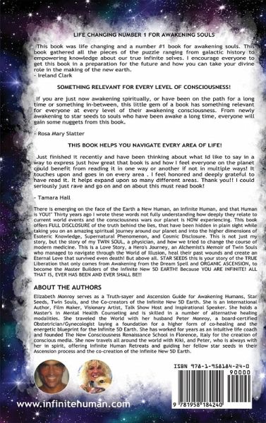"There is emerging on the face of the Earth a New Human, an Infinite Human and that Human is YOU!" Thirty years ago I wrote these words not fully understanding how deeply they relate to current world events and the consciousness wars our planet is NOW experiencing. This is not just my story but the story of my TWIN SOUL, a physician and how we tried to change the course of modern medicine. This book offers FULL DISCLOSURE of the truth behind the lies that have been hidden in plain sight while taking you on an amazing spiritual journey around our planet and into the higher dimensions of Esoteric Knowledge, Supernatural Phenomenon, and Cosmic Disclosure. This is a Love Story, a Hero's Journey, an Alchemist's Memoir of twin souls who managed to navigate through the world of illusion, heal their past wounds and create an Eternal Love that survived even death! But above all, STAR SEEDS this is your story of the TRUE Liberation that only comes from Awakening from the Dream Spell and ORGANIC ASCENSION, to become the Master Builders of the Infinite New 5D EARTH! Because YOU ARE INFINITE! ALL THAT IS, EVER HAS BEEN AND EVER SHALL BE!!
