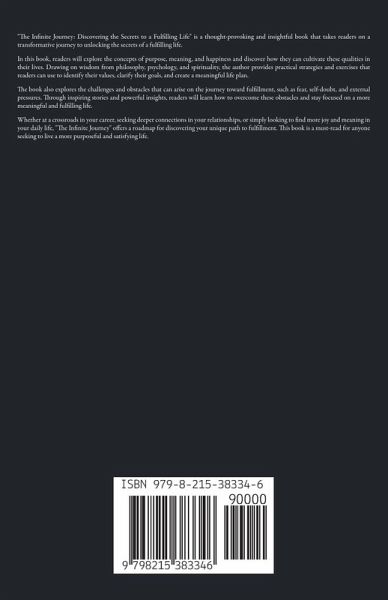 "The Infinite Journey: Discovering the Secrets to a Fulfilling Life" is a thought-provoking and insightful book that takes readers on a transformative journey to unlocking the secrets of a fulfilling life. In this book, readers will explore the concepts of purpose, meaning, and happiness and discover how they can cultivate these qualities in their lives. Drawing on wisdom from philosophy, psychology, and spirituality, the author provides practical strategies and exercises that readers can use to identify their values, clarify their goals, and create a meaningful life plan. The book also explores the challenges and obstacles that can arise on the journey toward fulfillment, such as fear, self-doubt, and external pressures. Through inspiring stories and powerful insights, readers will learn how to overcome these obstacles and stay focused on a more meaningful and fulfilling life. Whether at a crossroads in your career, seeking deeper connections in your relationships, or simply looking to find more joy and meaning in your daily life, "The Infinite Journey" offers a roadmap for discovering your unique path to fulfillment. This book is a must-read for anyone seeking to live a more purposeful and satisfying life.