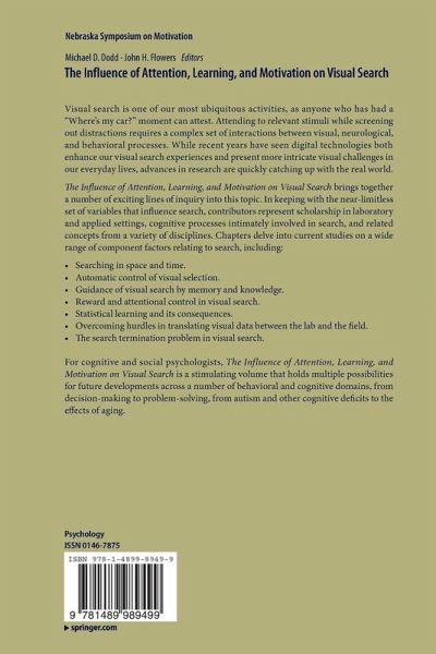 The Influence of Attention, Learning, and Motivation on Visual Search will bring together distinguished authors who are conducting cutting edge research on the many factors that influence search behavior. These factors will include low-level feature detection; statistical learning; scene perception; neural mechanisms of attention; and applied research in real world settings.