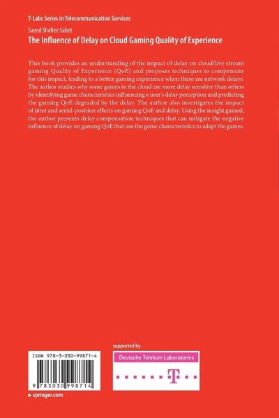 This book provides an understanding of the impact of delay on cloud gaming Quality of Experience (QoE) and proposes techniques to compensate for this impact, leading to a better gaming experience when there are network delays. The author studies why some games in the cloud are more delay sensitive than others by identifying game characteristics influencing a user's delay perception and predicting the gaming QoE degraded by the delay. The author also investigates the impact of jitter and serial-position effects on gaming QoE and delay. Using the insight gained, the author presents delay compensation techniques that can mitigate the negative influence of delay on gaming QoE that use the game characteristics to adapt the games.
