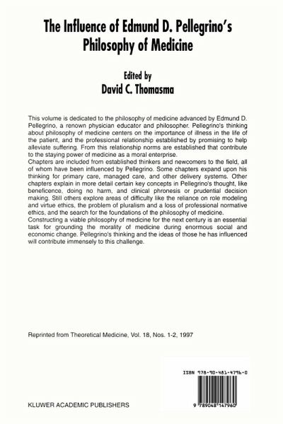 This volume is dedicated to the philosophy of medicine advanced by Edmund D. Pellegrino, a renowned physician educator and philosopher. Pellegrino's thinking about the philosophy of medicine centers on the importance of illness in the life of the patient, and the professional relationship established by promising to alleviate suffering. From this relationship norms are established that contribute to the staying power of medicine as a moral enterprise.